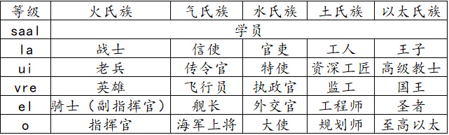 在鈦族社會中,個人等級的重要性僅次於與生俱來的種姓,共同決定着其在鈦族文化中的地位。等級體系如下所述: