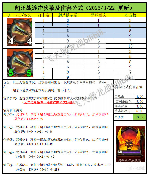 所以超杀刀+打卡就能实现攻击一次溅射杀死3个随从,然后重新获得3次攻击次数。打卡的效果是可以叠加的,无需奥丁也可以打出爆炸伤害。