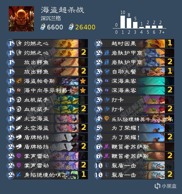 海盗这套的话则是马速拉满,本质上是拼胡卡组,内战有优势。四个海盗可以给超杀刀直接减四费,掌声雷动配合帕奇斯和1费海盗可以大量过牌。