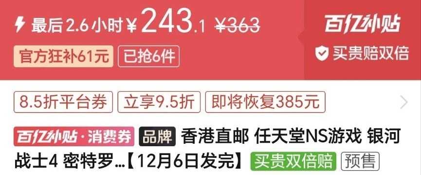 优惠方式:1代pdd积分券,2代v3九折券,其中2代用300-50可以做到260多
