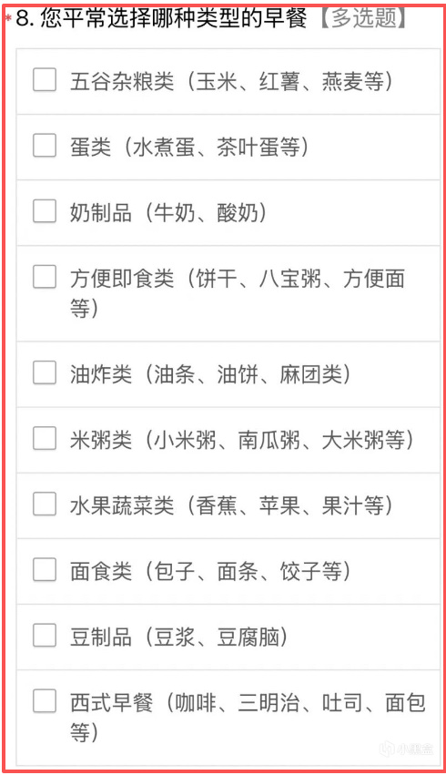 问卷里的选项格外全面,从豆浆、油条、豆腐脑等传统中式早餐,到三明治、吐司等西式品类,再到玉米、红薯等杂粮,几乎覆盖南北食客的口味偏好。