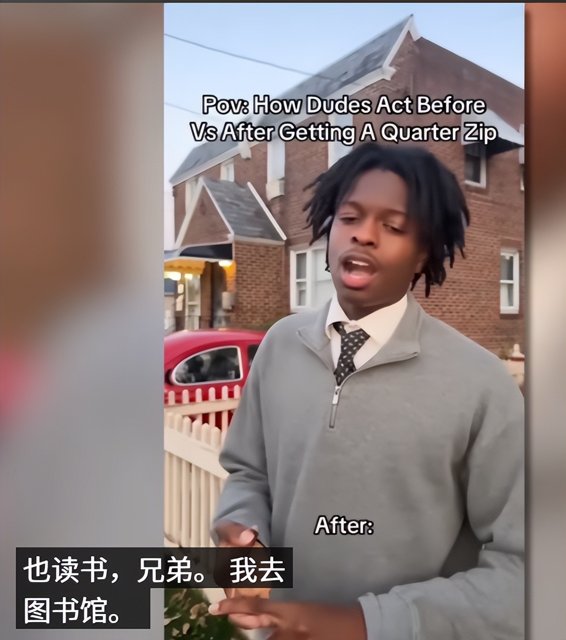 于是,有新闻媒体做解读。他们认为,这种趋势代表年轻群体希望摆脱以往关于种族的刻板印象。半襟拉链衫往往与阶级、地位、财富,以及健康的饮食习惯联系在一起——因此,这会是提升社区形象的一个契机。