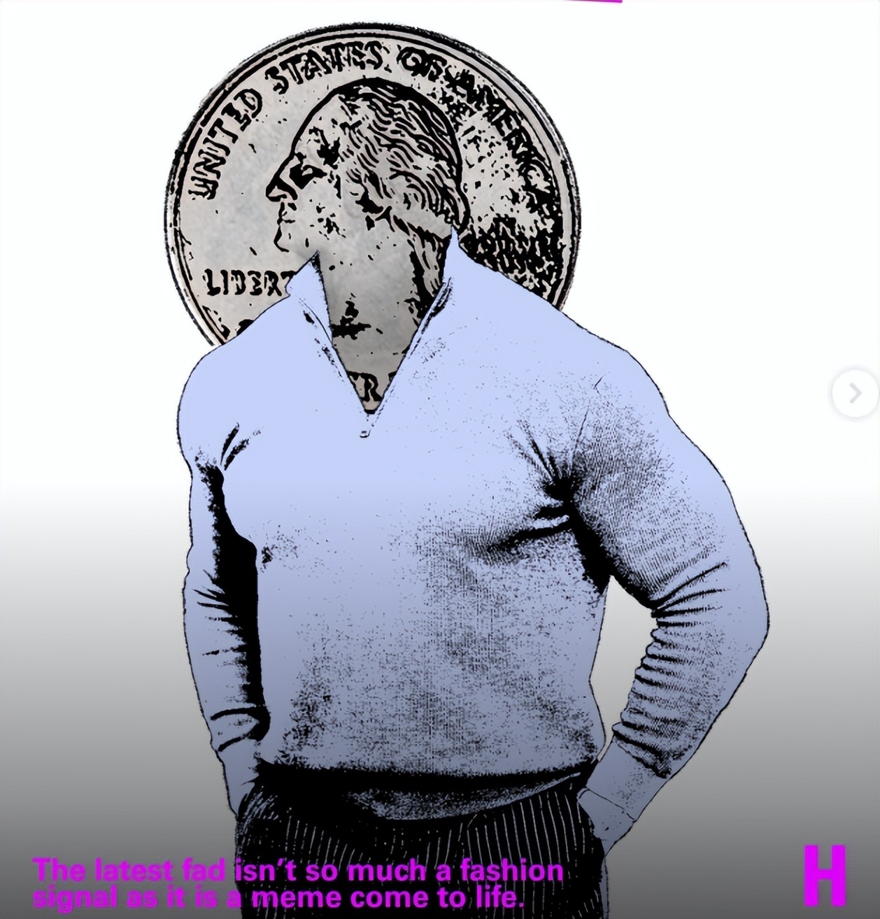 关键在于,一旦刨去了“金融男”的光环,“半襟拉链衫”版型似乎只剩下了老气和沉闷。尤其在“文科都是服务业”而“金融就是文科”的认知下,我们更加难以理解,这款仿佛“爸爸辈”才爱穿的拉链衫,究竟好看在哪里?