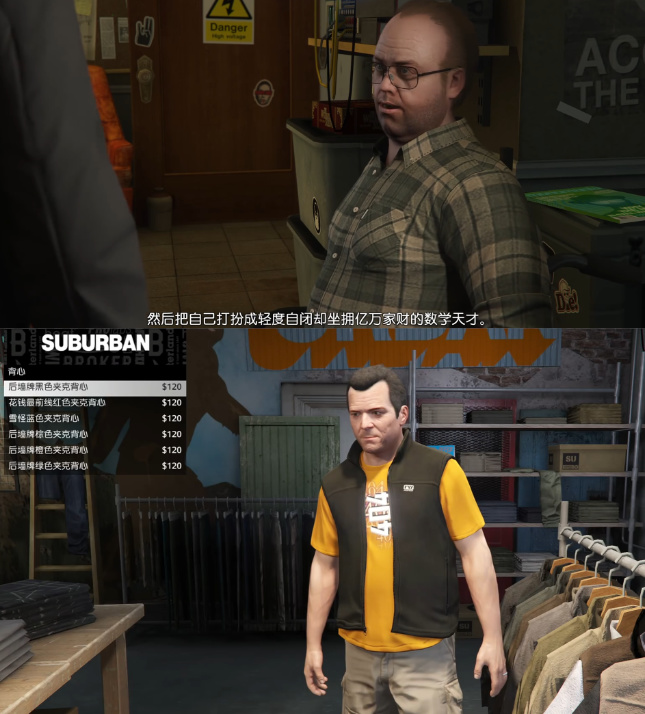 而一个事实是,“半襟拉链衫”还不是那些华尔街高净值人士最灾难的穿衣潮流。更可怕的要数“奶奶款马甲”,同样在《GTA5》中,一个叫“好友申请”的任务就嘲笑过这种时尚,称这种风格叫“装扮成轻度自闭的数学天才”。
