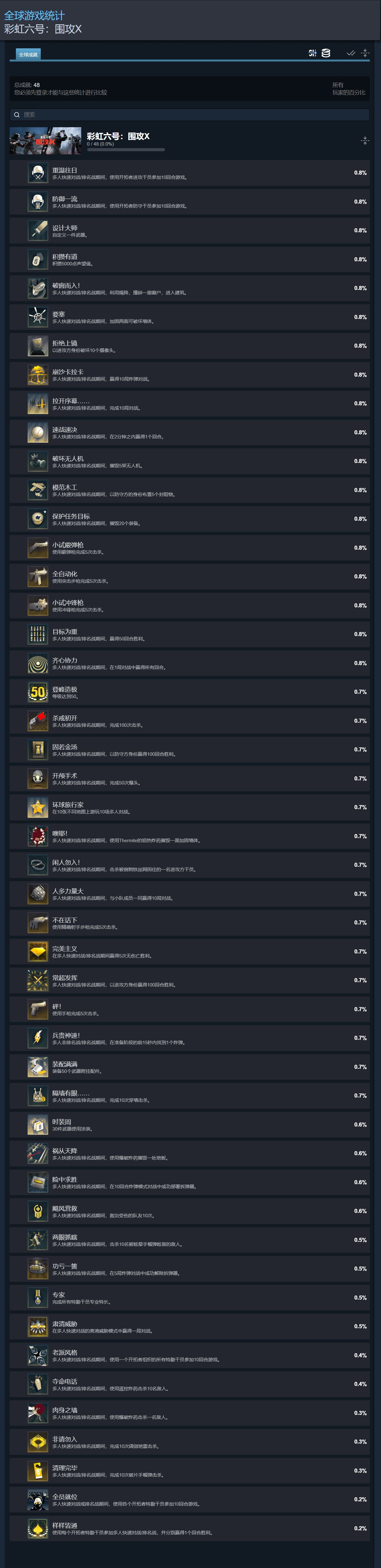 《彩虹六号:围攻X》正式追加Steam成就系统!