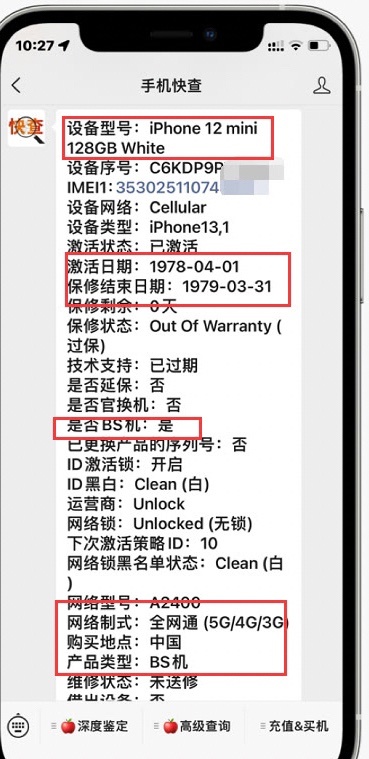 资源机:又称bs机/1978机,是指一些没过苹果标准的机子,会打包给bs公司去卖,这种机子无官方保修,激活日期为1978年4月1日
