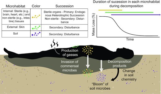 然而,研究表明,在尸体软组织腐烂数月甚至数年后,仍然可以在尸体下方的土壤、土壤表面以及墓穴中检测到宿主相关微生物的 DNA 特征。