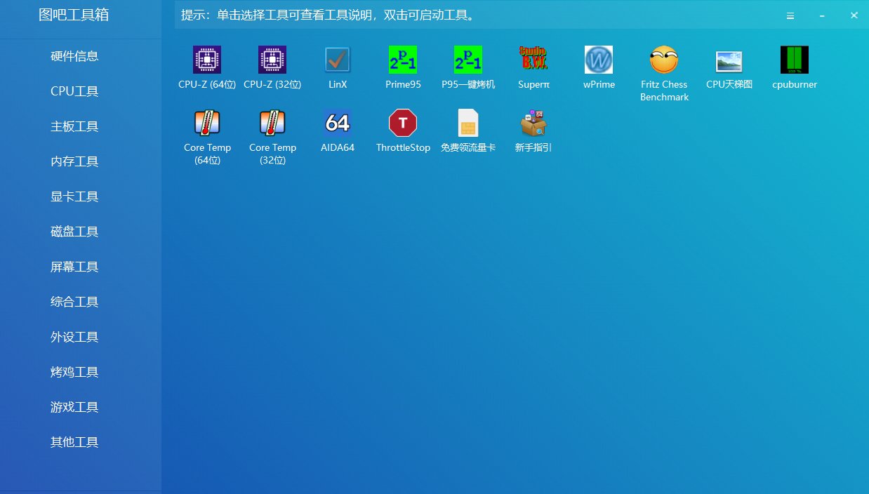 左侧有电脑的基本硬件信息,CPU工具,主板工具等等