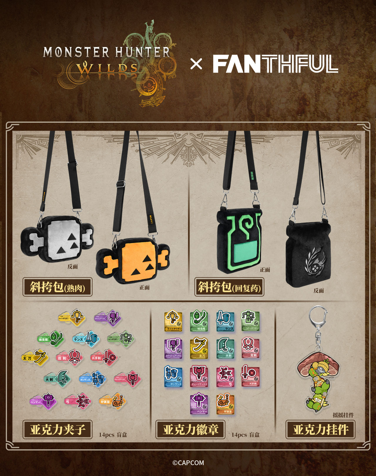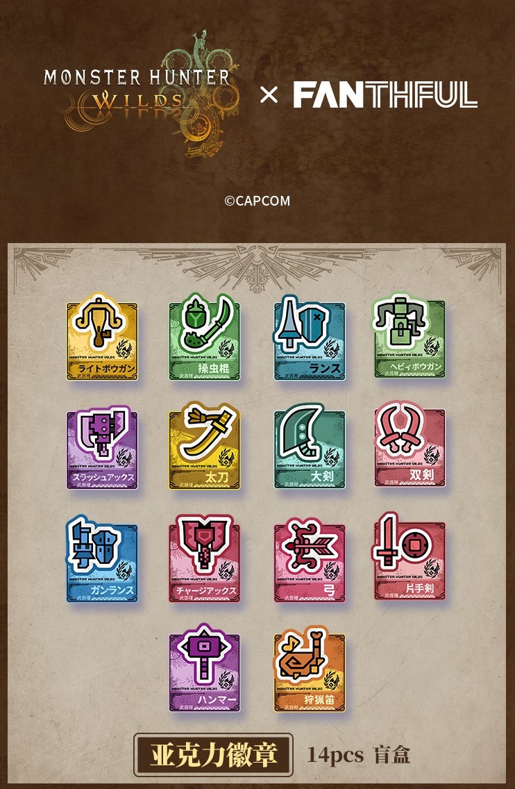 今日,FANTHFUL官方公布和怪物猎人:荒野合作推出的联名周边(第一弹)。