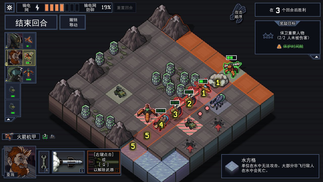 陷阵之志的通关目标不是将敌人消灭得一干二净,而是坚持有限的回合保护建筑。游戏虽是战棋玩法,但融入了一套非常精练的推拉机制,运用得到可以实现花样的战术操作:让敌人受到严重的碰撞伤害,改变敌人的攻击范围,堵住敌人的刷新位置等