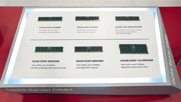 针对数据中心市场,尤其是AI应用,SK海力士开发了多种形态的DDR5内存,现场展示了六种。