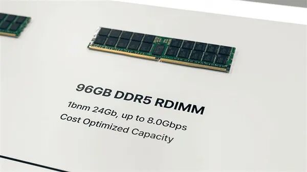 第二个还是DDR5 RDIMM,不过是稍微落后一点的1bnm工艺,好处是容量做到了96GB,单颗24Gb,最高速率还是8000Mbps,针对成本优化,适合预算相对有限的客户。