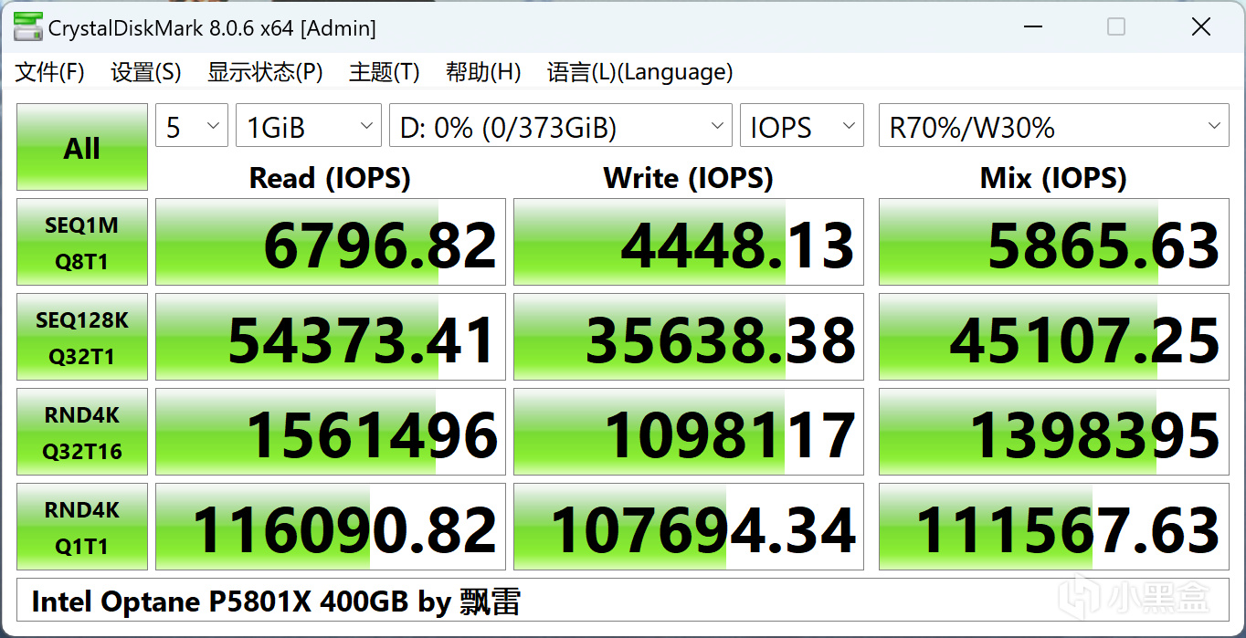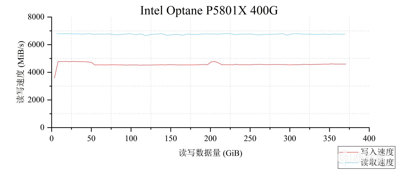 仅从前两行的顺序读写结果来看,傲腾P5801X 400GB如今已经显得平平无奇了,甚至只有4600 MB/s左右的写入速度还有点让人失望。