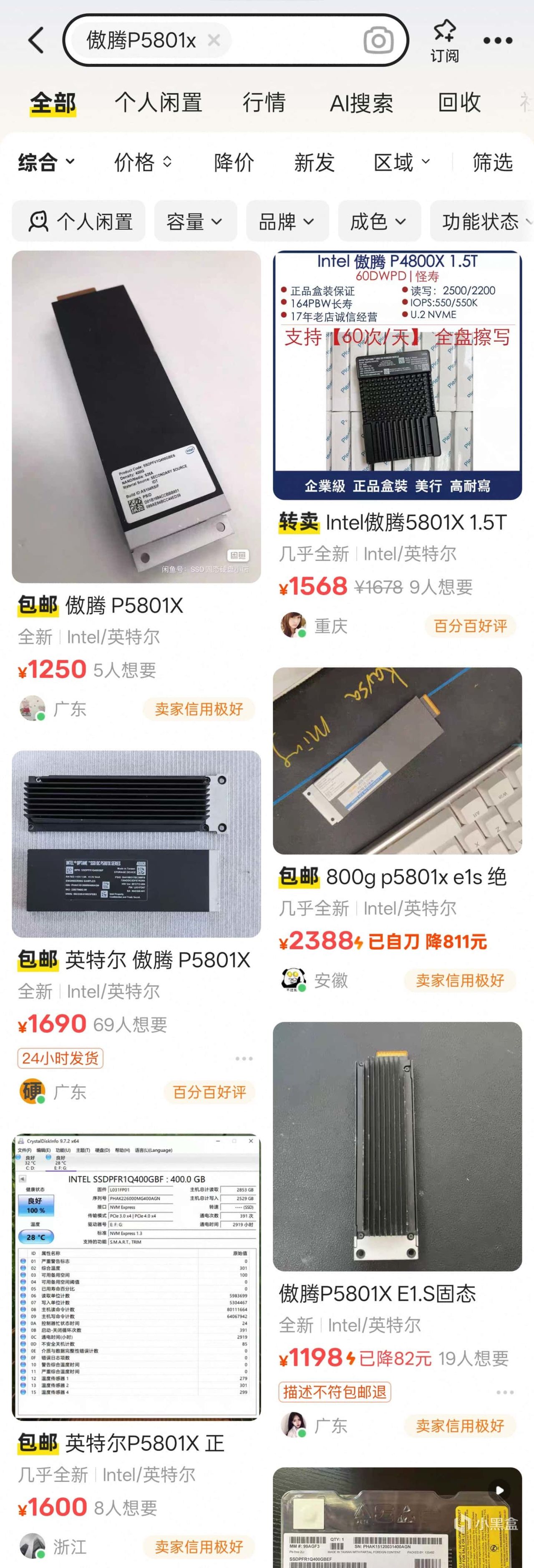 二手市场对供需关系的反应更加灵活,傲腾各个型号在全网SSD涨价的背景下不约而同地集体降价,说明原来的价格体系已经支撑不住了。