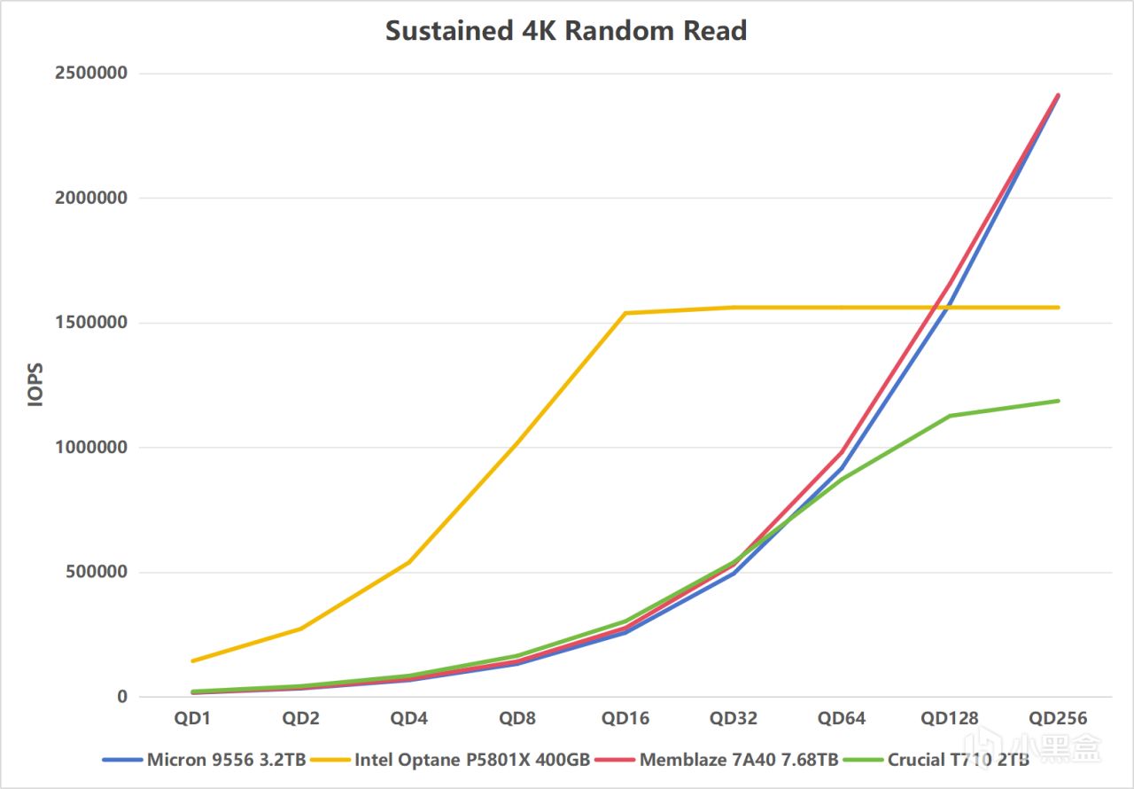当然要承认的是,这一点倒不是傲腾的独家秘技,实际上使用闪存颗粒的企业级SSD同样也都具有这种特性,比如下图中开了大OP的美光9550 3.2TB,也有类似表现:
