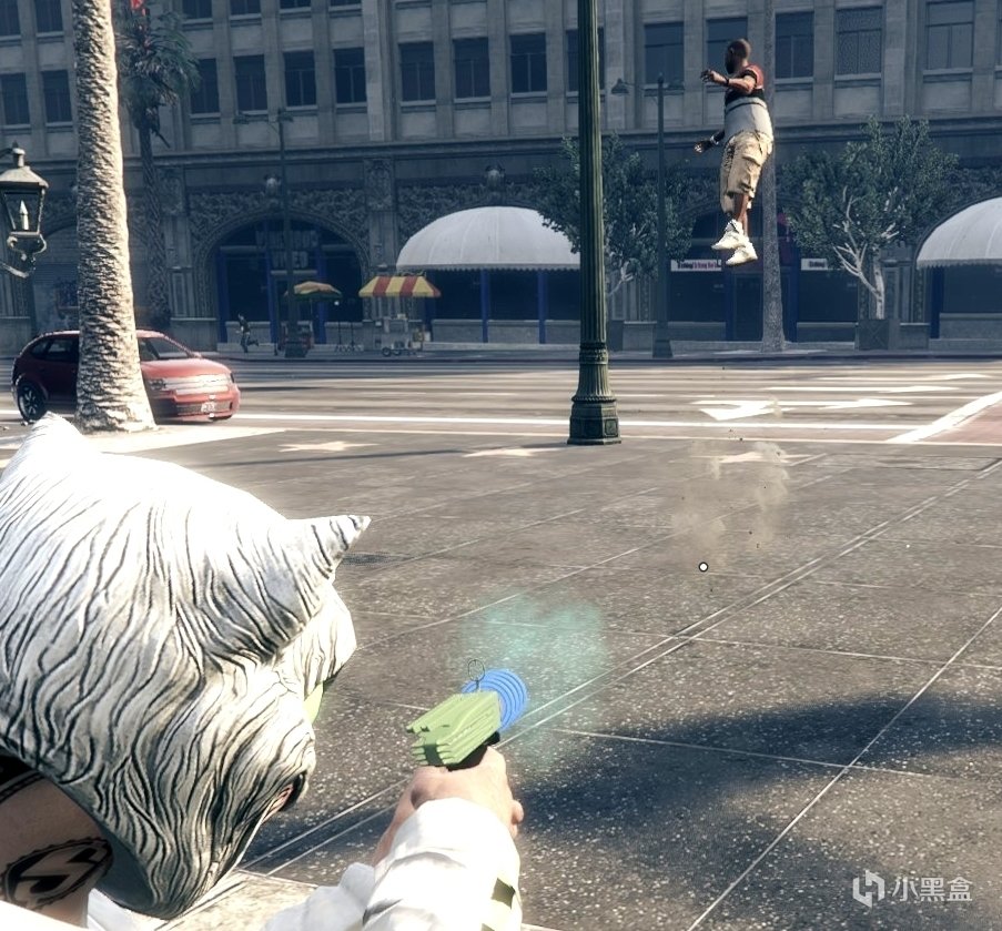 在游戏中,玩家可以通过朝自己脚下释放原子能枪,将玩家自己弹飞数米高,可以到达一些正常情况下攀爬够不到的地方(比如一些建筑的房顶、机场外围高围栏、太平洋银行铁门等)