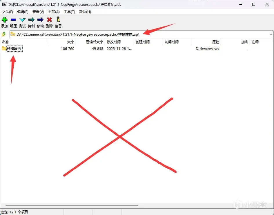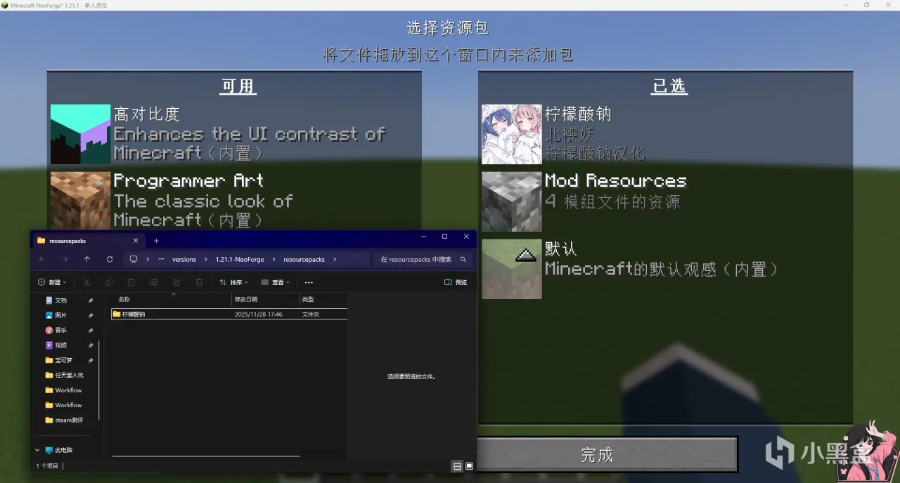 1.最終成品是這樣子的,最後打開遊戲中放置資源包的位置,也就是resourcepacks文件夾,拖拽[檸檬酸鈉]文件夾至裏面即可。