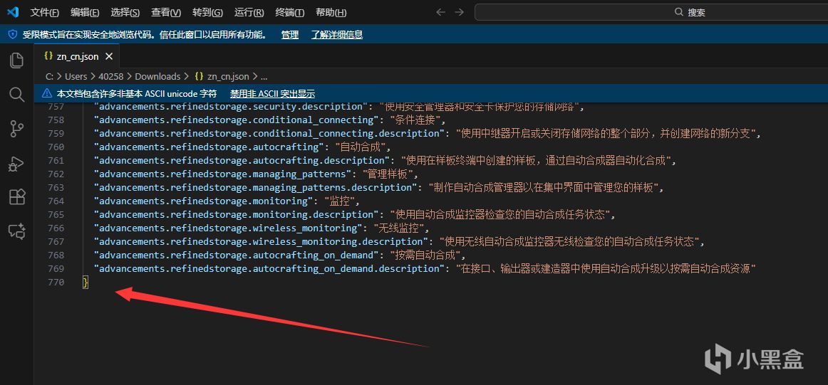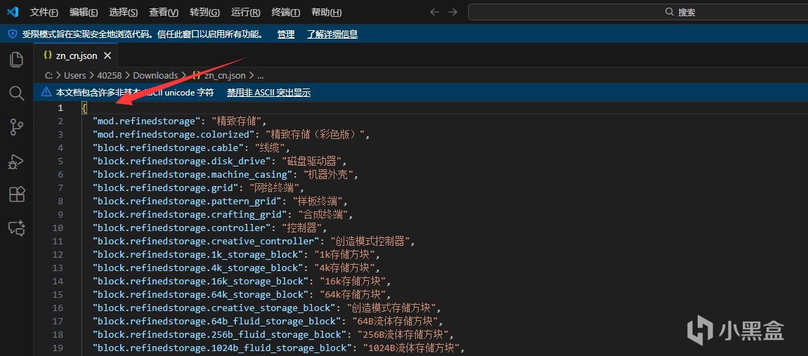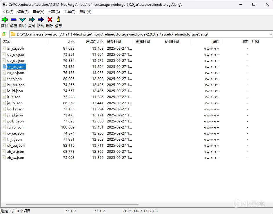 注意:一個mod對應一個三級文件夾,最終RS的漢化文件zh_cn.json就在[檸檬酸鈉\assets\refinedstorage\lang]