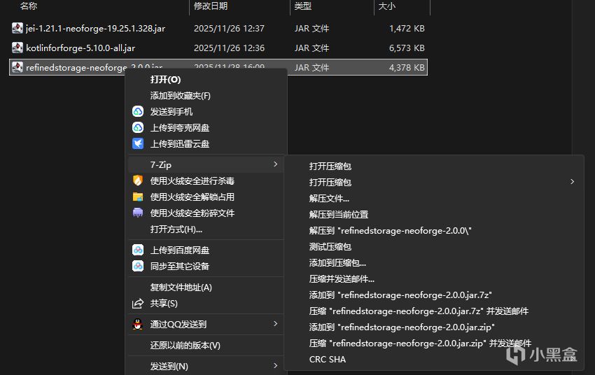1.找到mod文件的所在位置,選擇要漢化的mod,右鍵[打開壓縮包],這樣就能以壓縮包的形式打開jar文件。