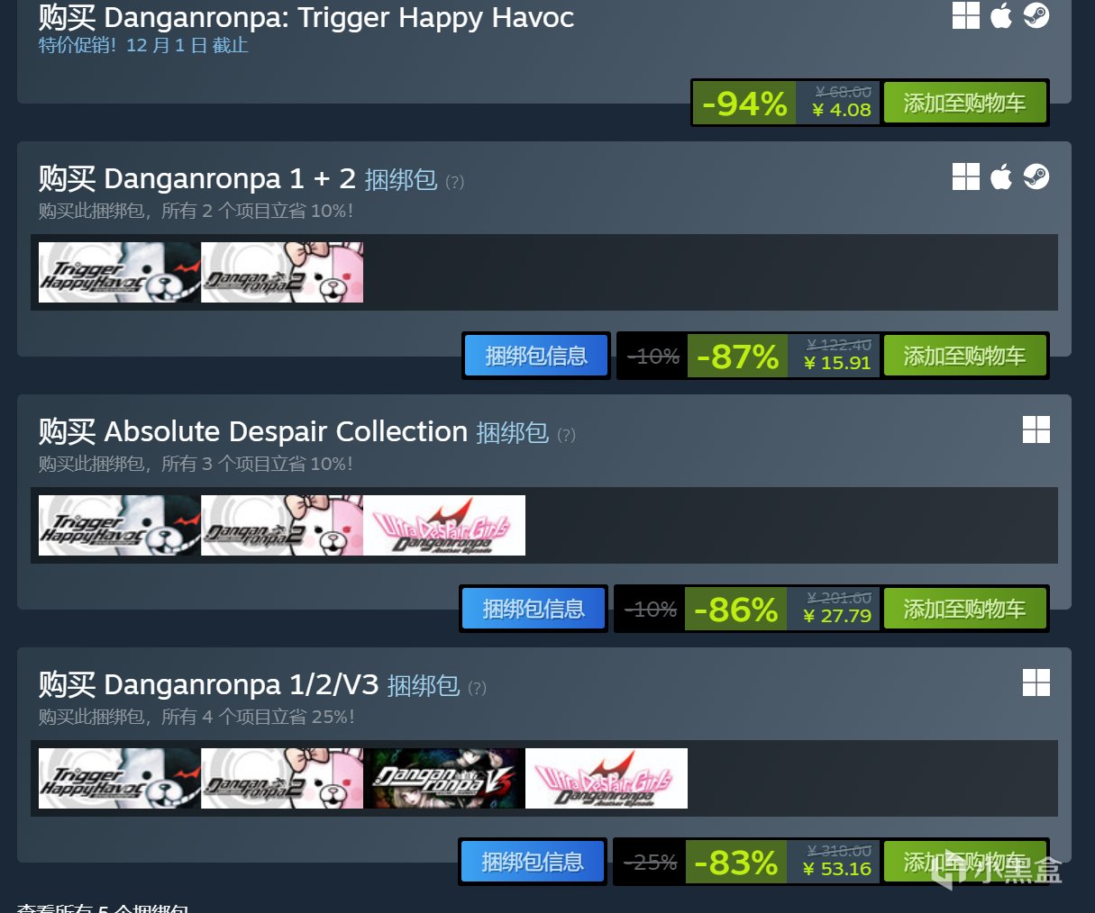咳咳,各位道友别来无恙,这里是依旧靠游戏“赛博修仙”的长生。最近由于黑五折扣又厂商自发组织所以每天都有一大波折扣来袭!今天黑五折扣也是迎来了一波高潮弹丸论破系列折扣开启(话说我差点以为他这次不打折了这波真是等等党的胜利了)事先申明本贴以本日折扣为主尽量避免低评分游戏出现