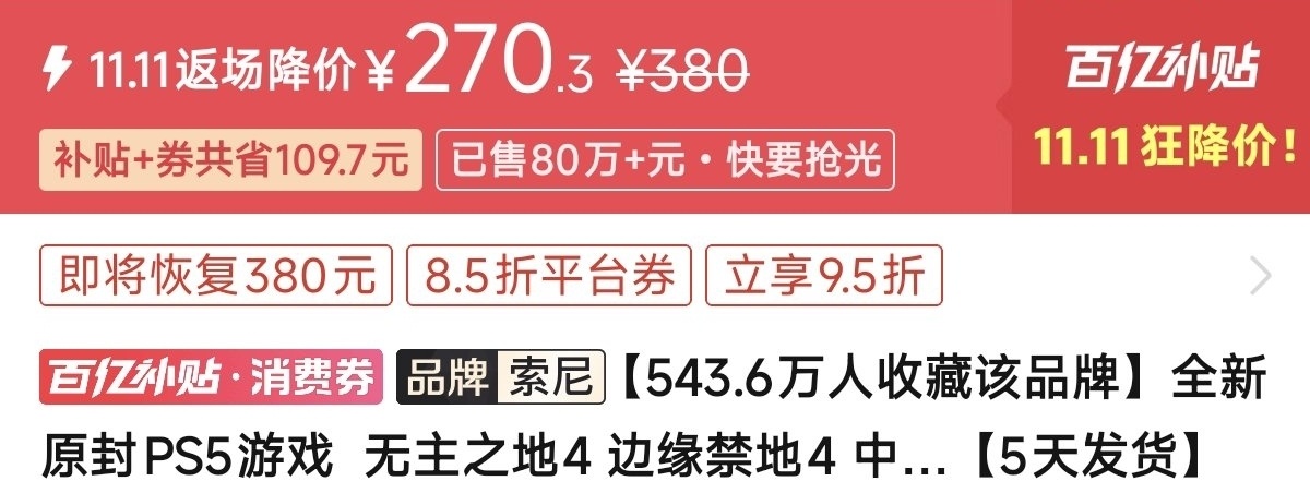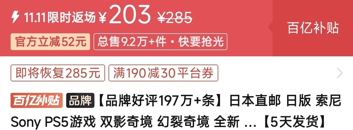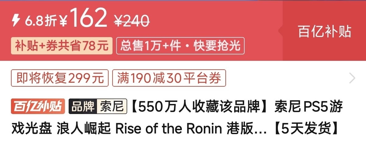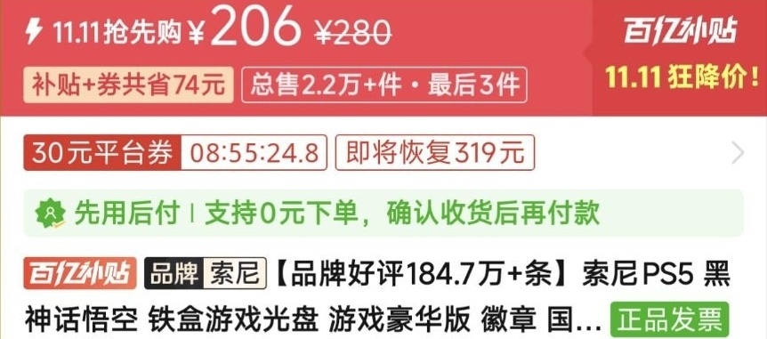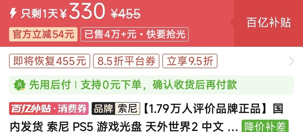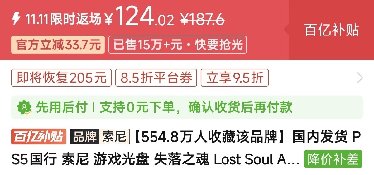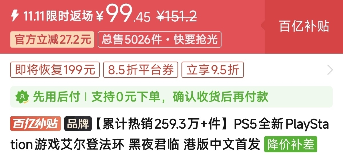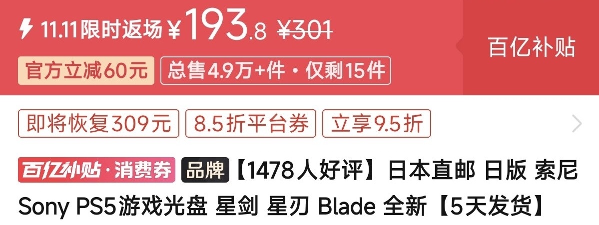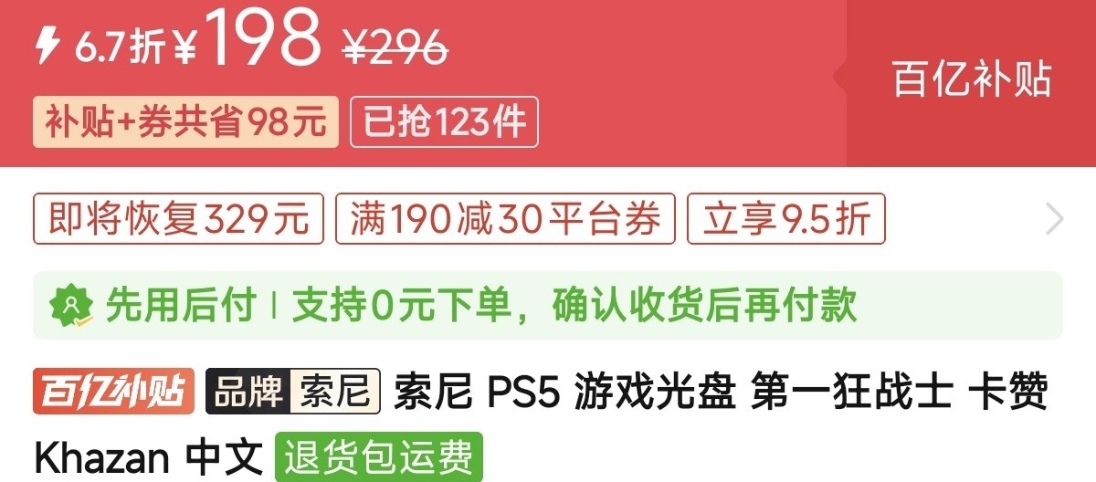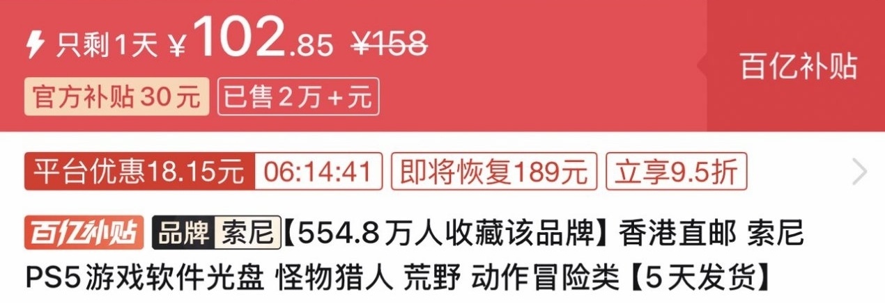 优惠方式:新史低,刷到买就完了