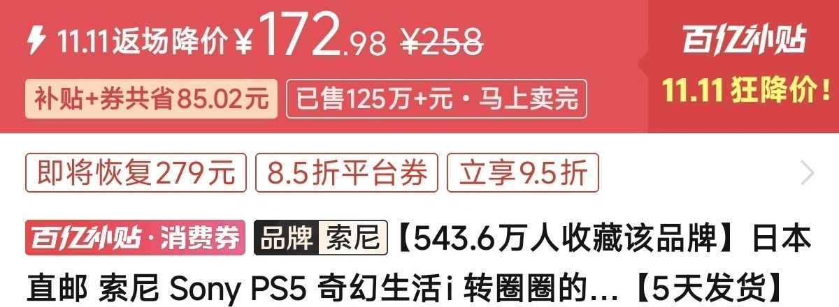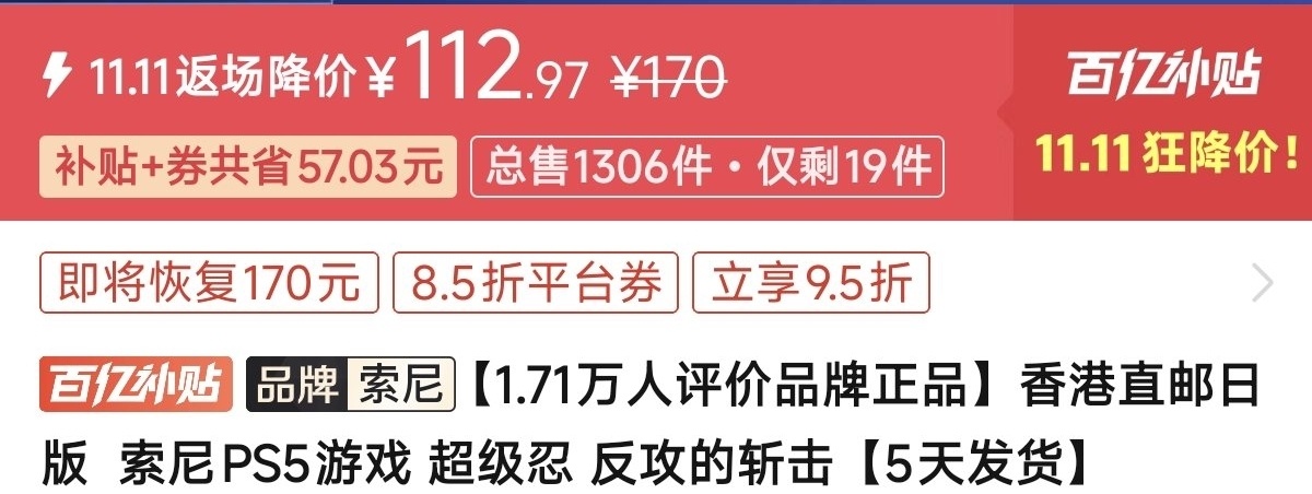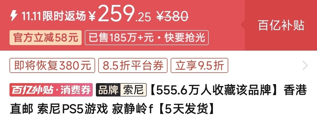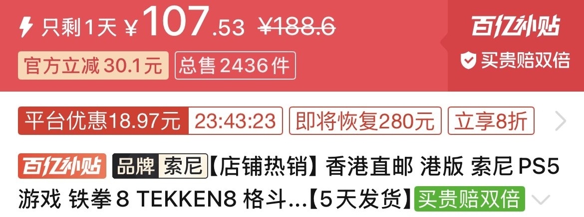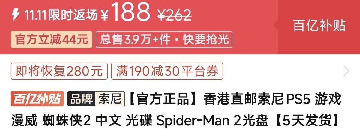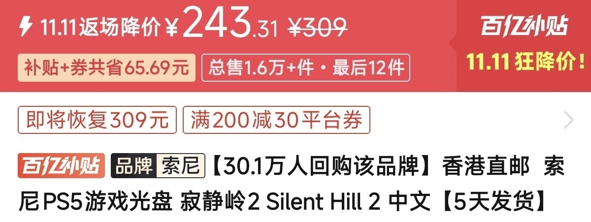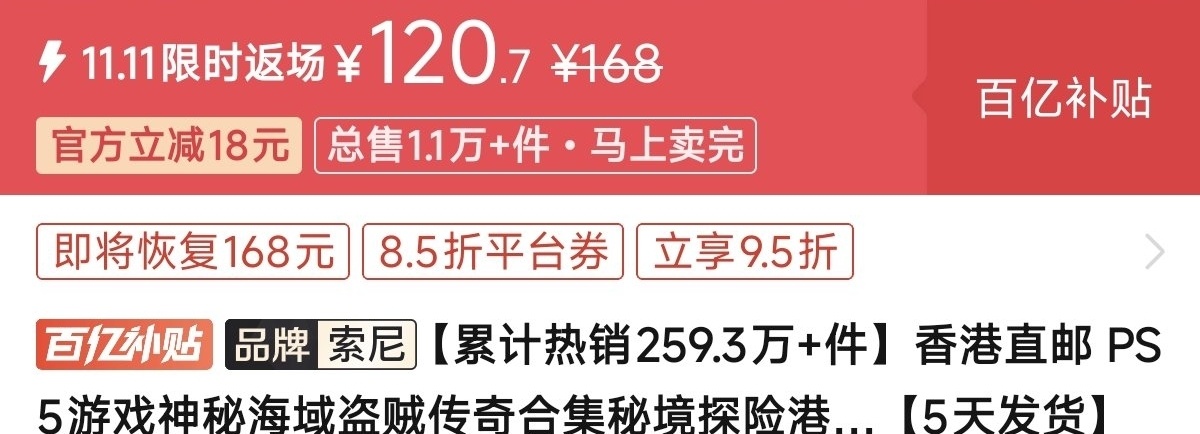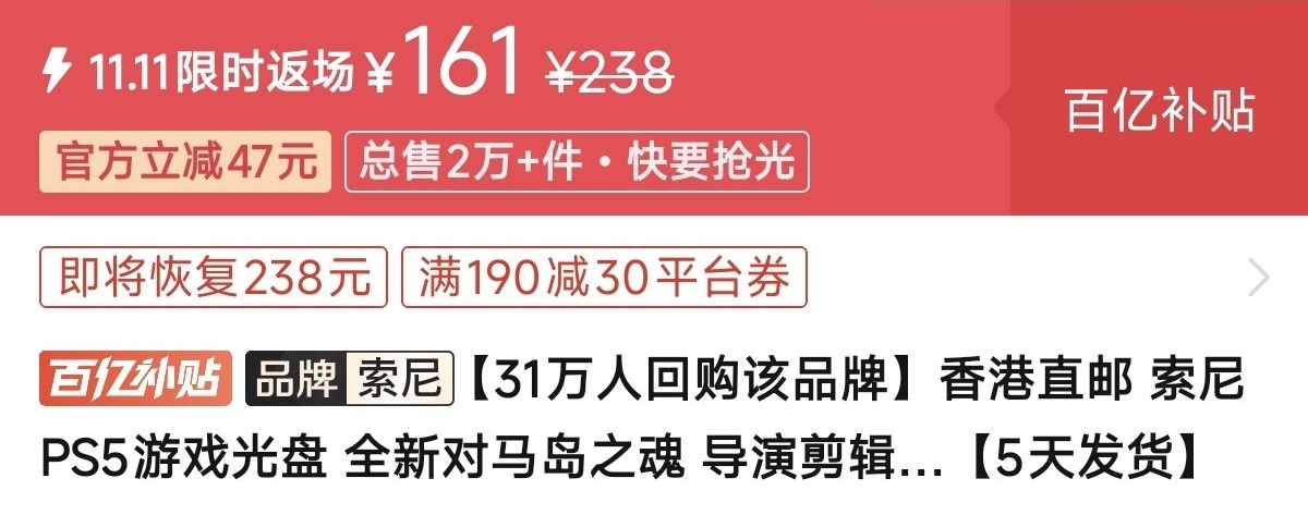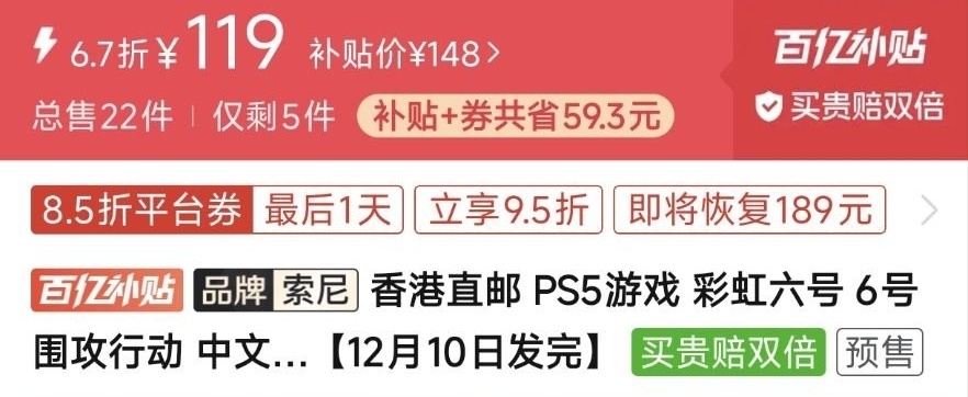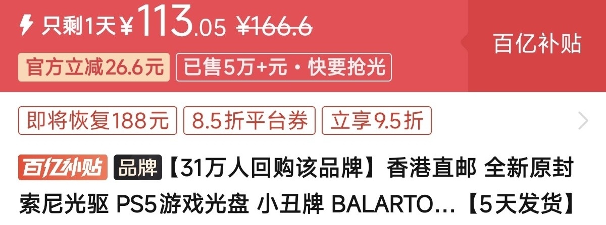 优惠方式:新史低,刷到买就完了