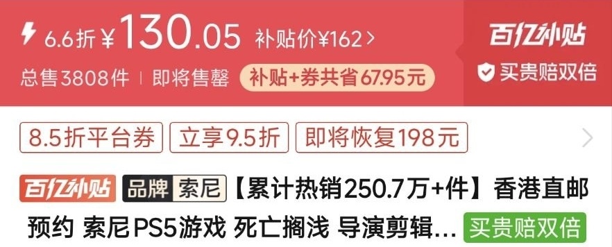 本周日常价(港版),史低是海外版的136接近,建议等。