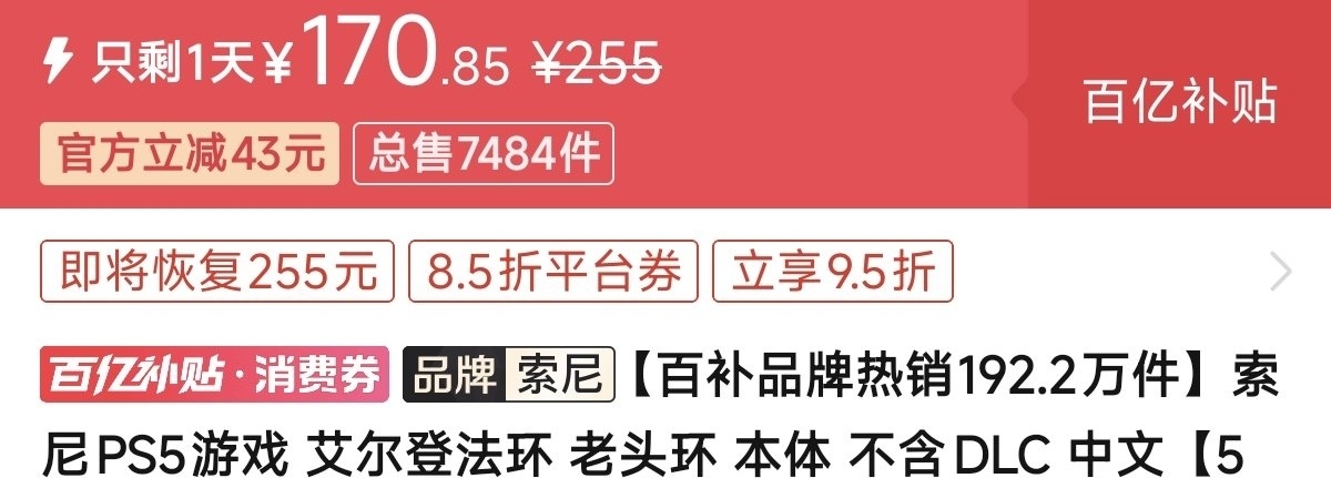 ⑦《艾尔登法环》170元