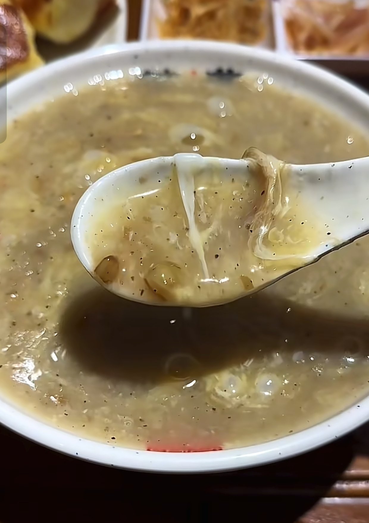饣ˢʰⁱ它汤,滚烫的炖煮一夜的鲜汤浇过鸡蛋后,撒一点胡椒面所带来的味觉体验~