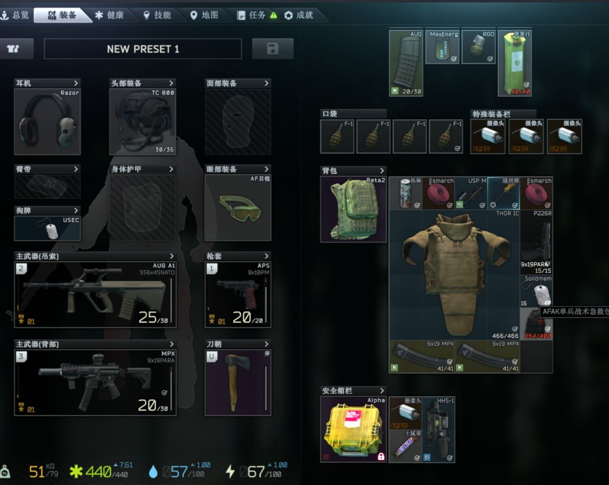 就这样,几个小时中我一点一点积攒装备,就像进货的老板。保险箱是虚假的保险,usec和bear才是真正的保险箱。我成就感和囤积欲望从来没有这么满足。