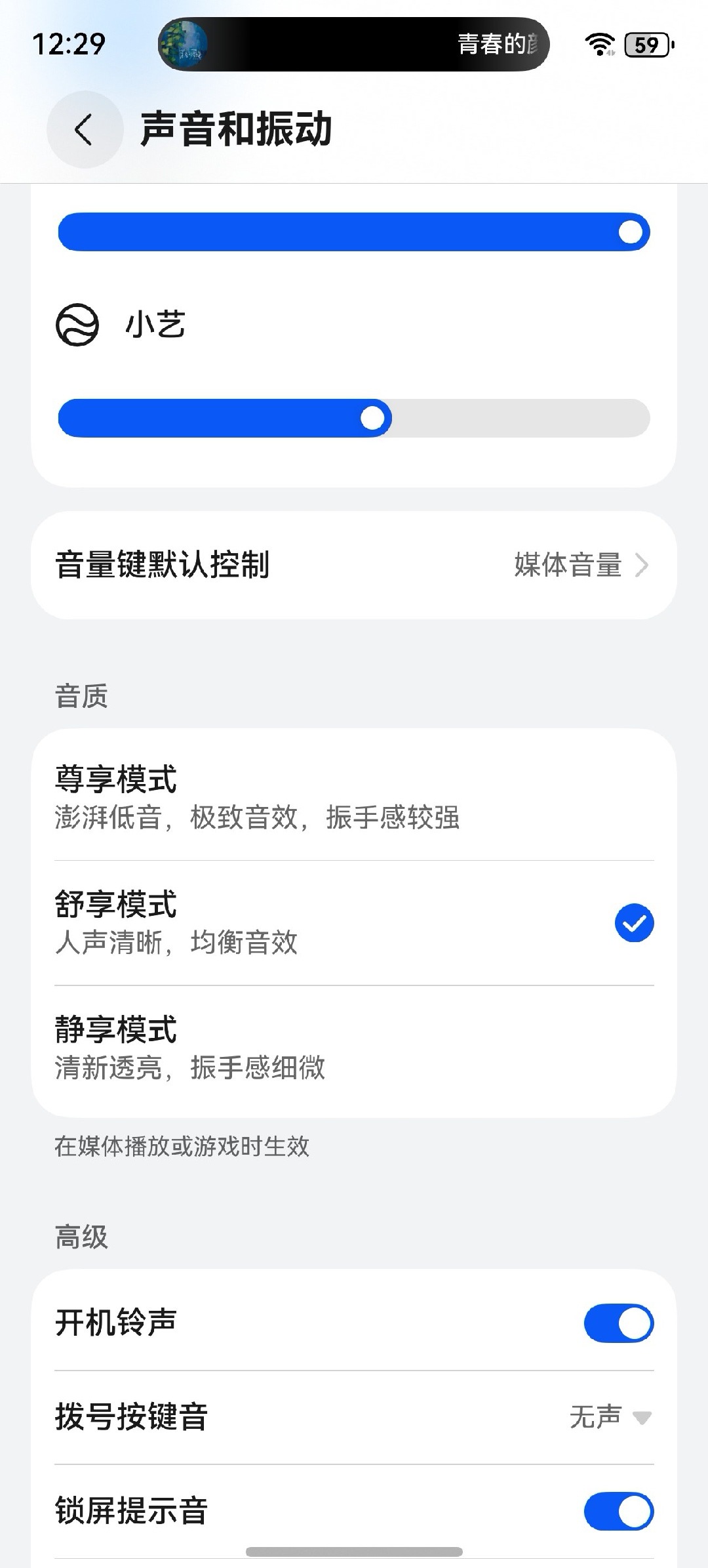 音质挺好的,同时音质有3挡可选,分为尊享、舒享、静享(图2)但是,因为振动发声,声音大一些的话手机背部有明显震感,如果不喜欢震的话,可以牺牲音质选择静享,这个没有办法兼得,基本的物理原理摆在这里。