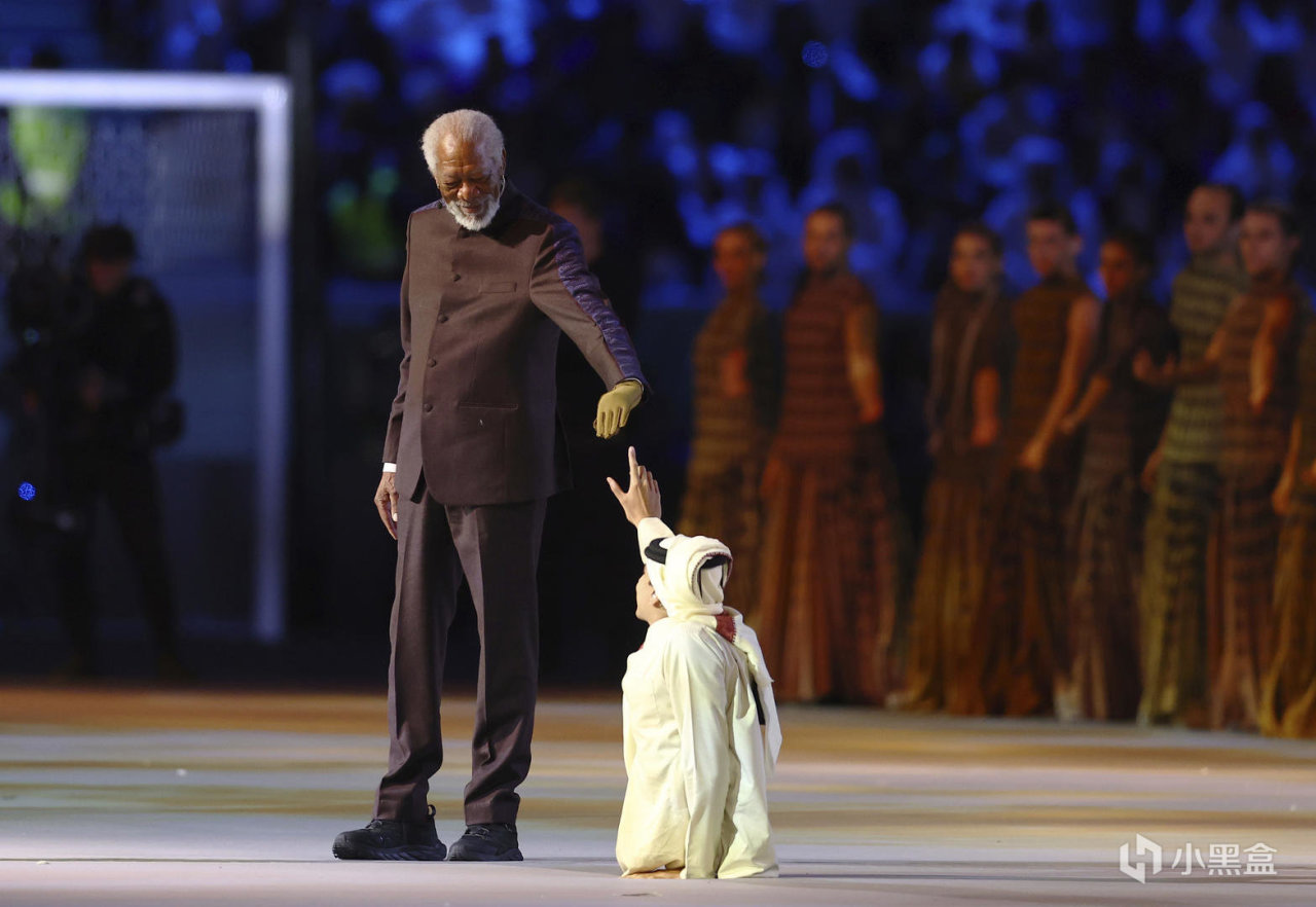 当卡塔尔世界杯开幕式上78岁的摩根·弗里曼和卡塔尔残障男孩站在舞台中央时