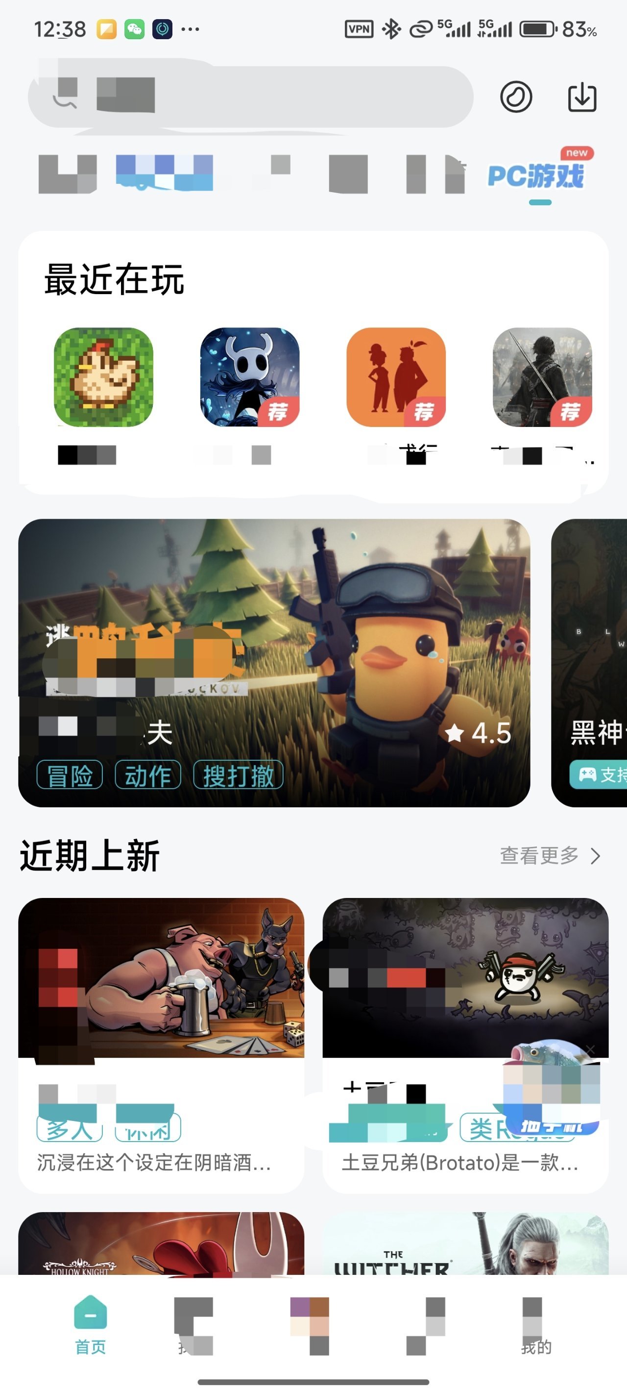 ②首页找到pc游戏界面