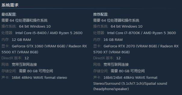遊戲配置需求: