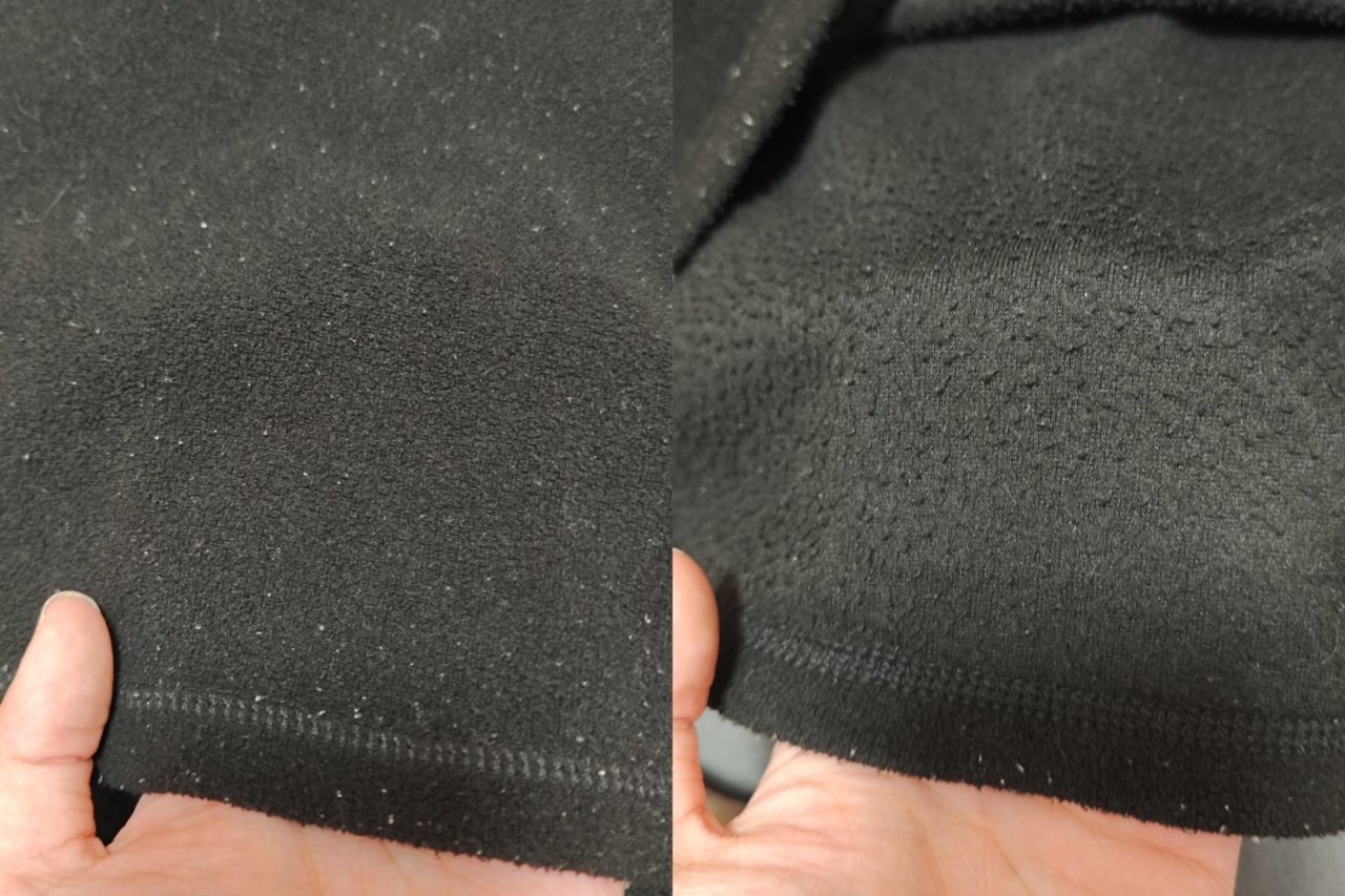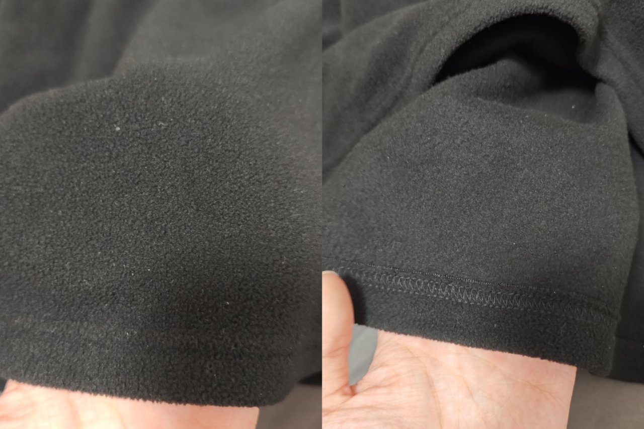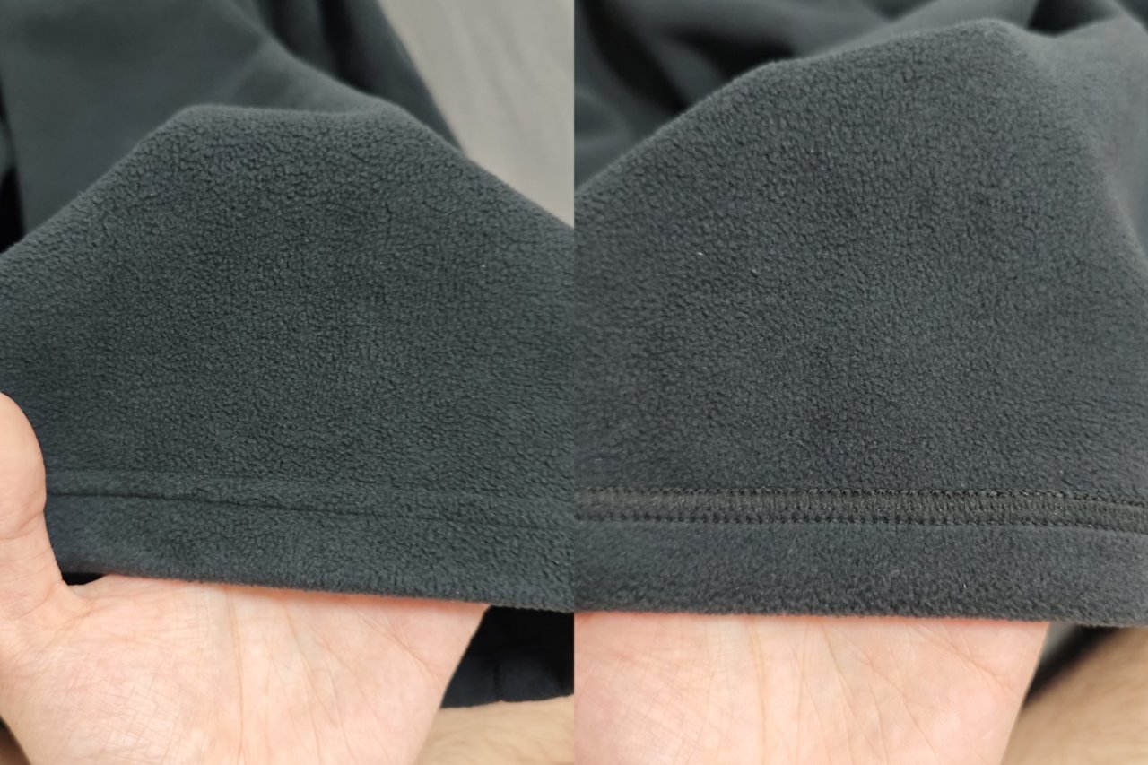 面料手感:双面摇粒绒材质,摸起来比迪卡侬MH100细腻一点点🤏,而且厚实不少;到内层这边就不一样了,不同于迪卡侬,探拓的内外层抓绒差别很小。