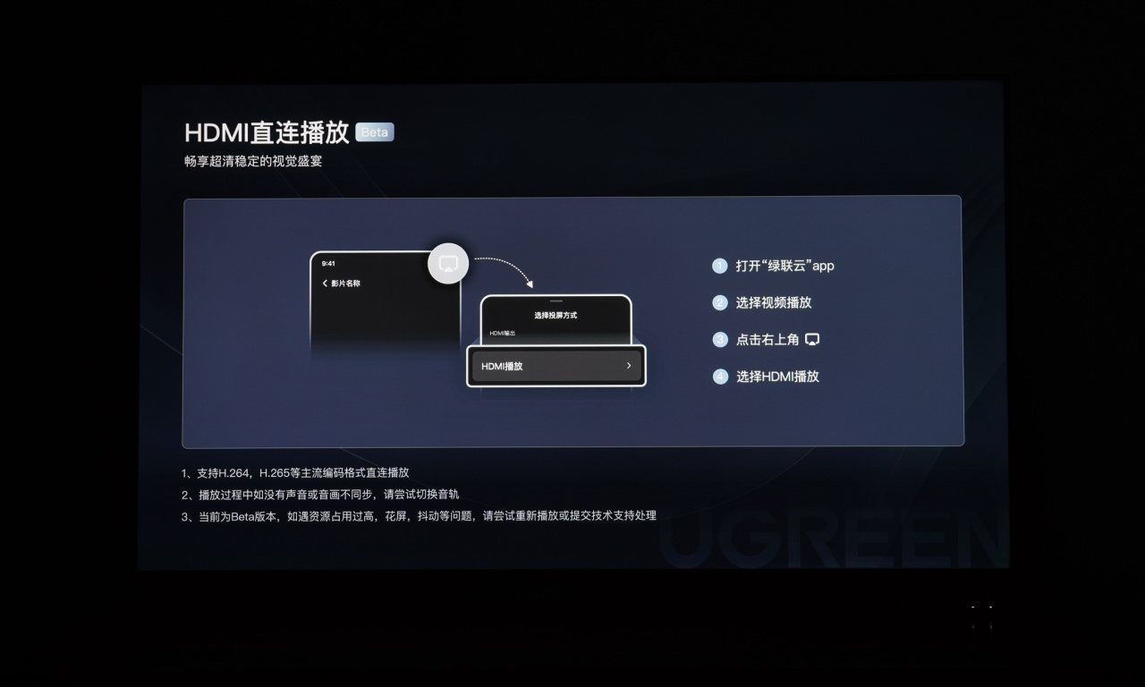 而除了雷鸟电视之外,绿联私有云NAS DH4300 Plus的HDMI接口还可以连接在雷鸟的显示器,或者非智能化的投影仪、便携屏等带有HDMI in接口的设备上,让他们也化身为智能化的高清播放器。