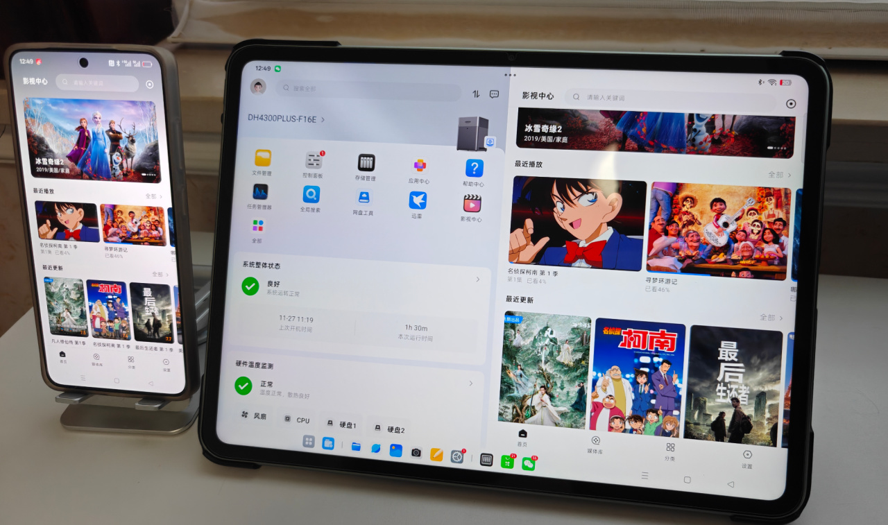 而除了Windows电脑端与安卓TV端之外,绿联私有云还提供了手机、Pad的客户端(安卓、苹果系统都有)以及MacOS的客户端,我的手机、平板,甚至我比亚迪汉EV的安卓车机上都安装了客户端,各个设备间的播放进度实时同步,无缝衔接,做到走到哪里都能想看就看。