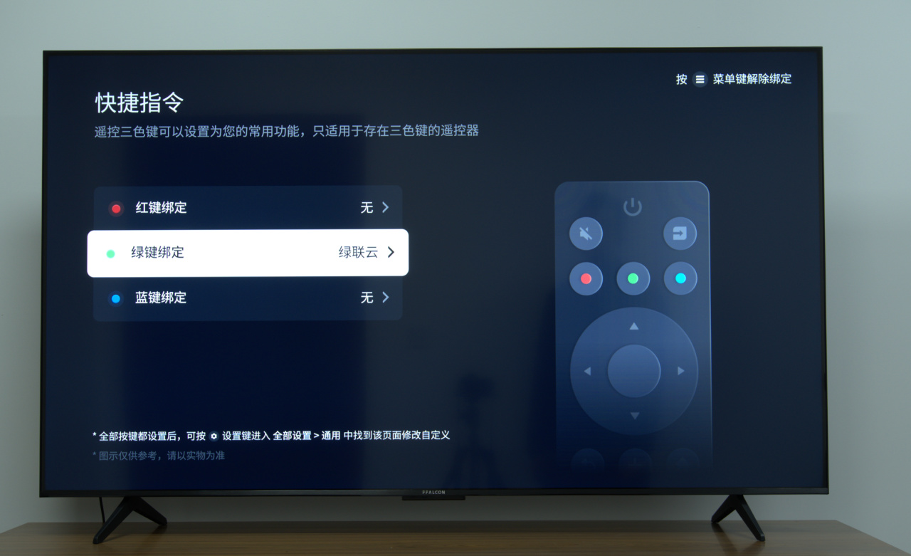 对于幼童与老人来说,或许这还不够简单,这时就需要提一下雷鸟鹤6 26款电视所配备的遥控器上的3个可自定义按键了,其上拥有3个可自定义按键,比如我们将绿色按键设置为绿联私有云APP的一键启动。