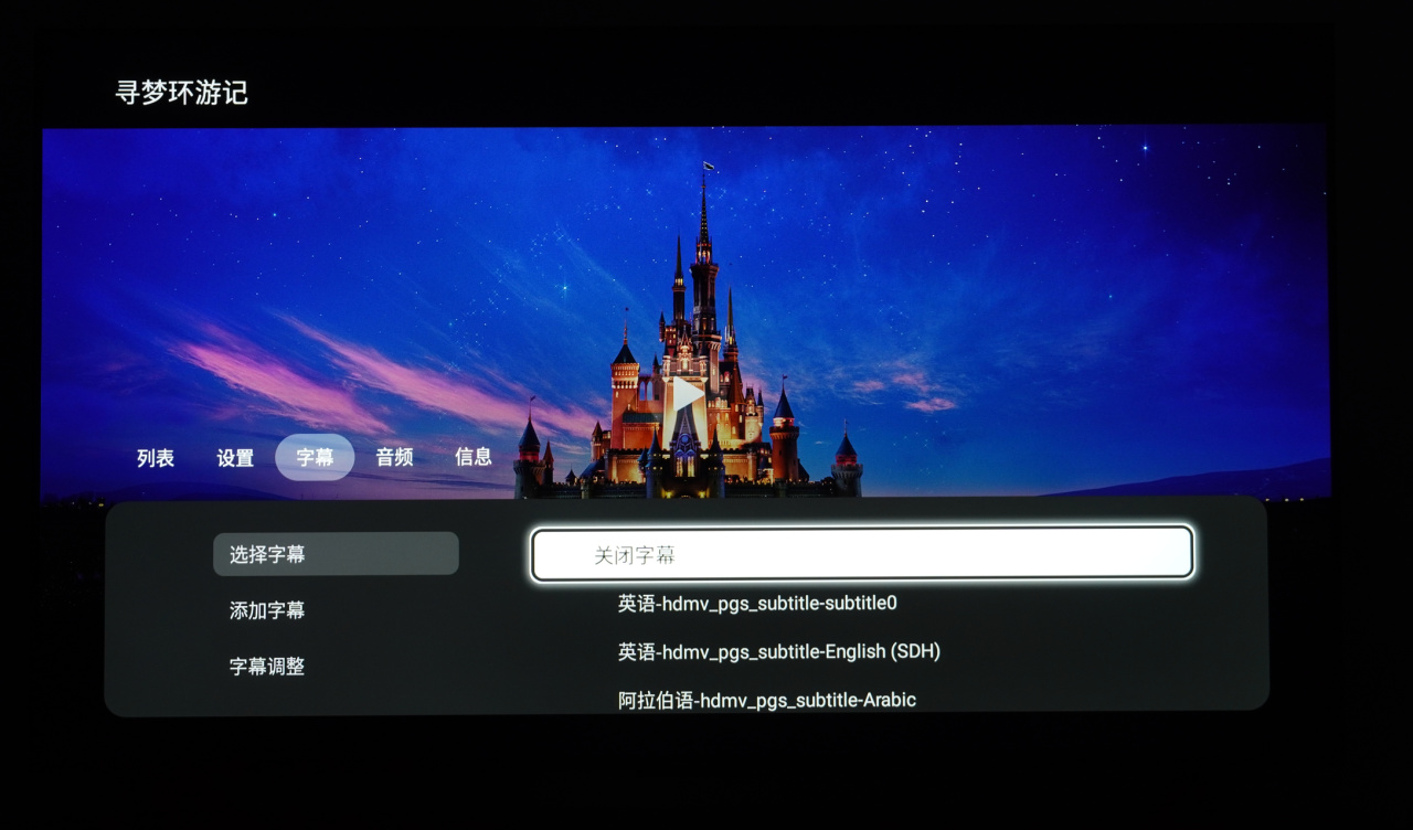 另外,绿联私有云TV客户端还支持选择中\英文字幕,或开启、关闭字幕,在后续孩子学习英语时在生肉熟肉间快速切换会很有帮助。
