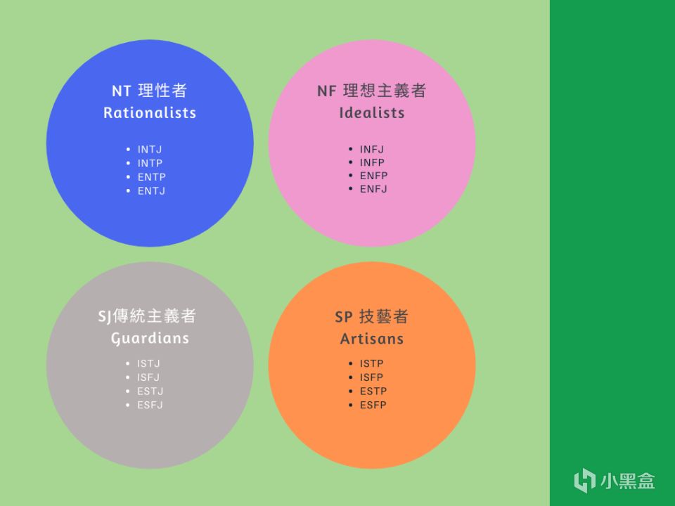 它们分别对应了MBTI里的: