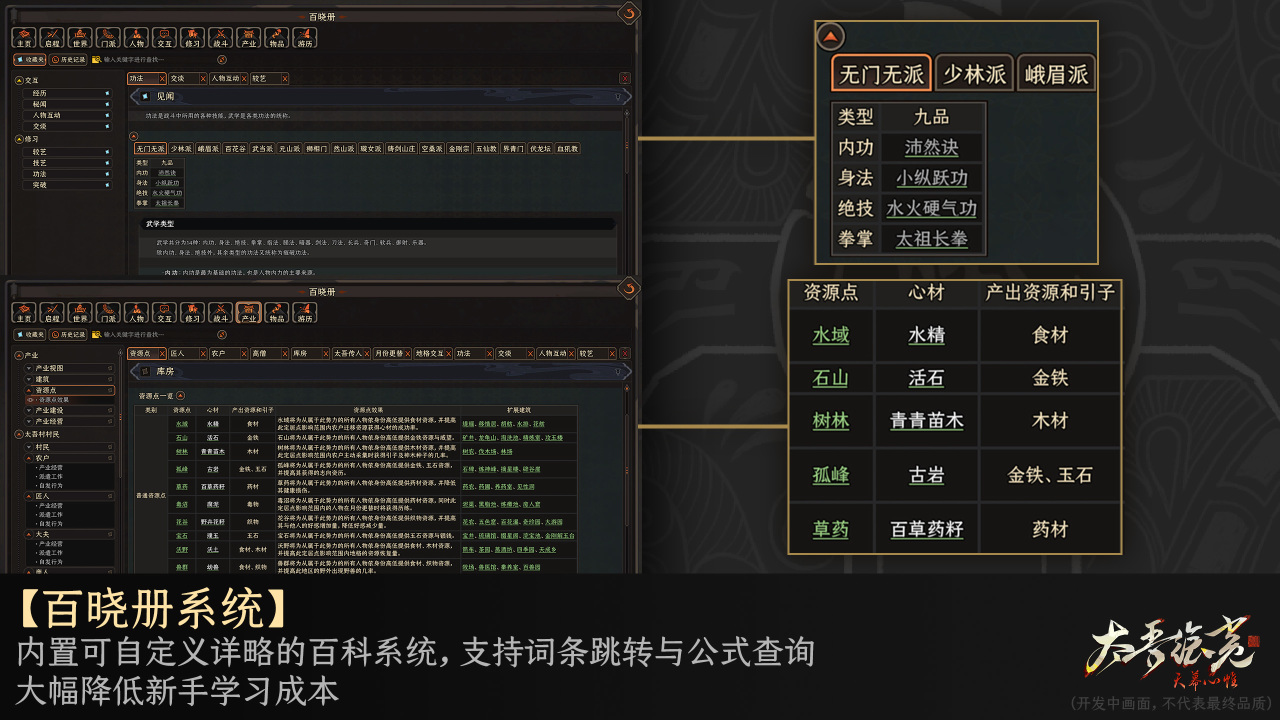 百晓册系统。内置可自定义详略的百科,支持词条跳转与公式查询,助力新手快速入门