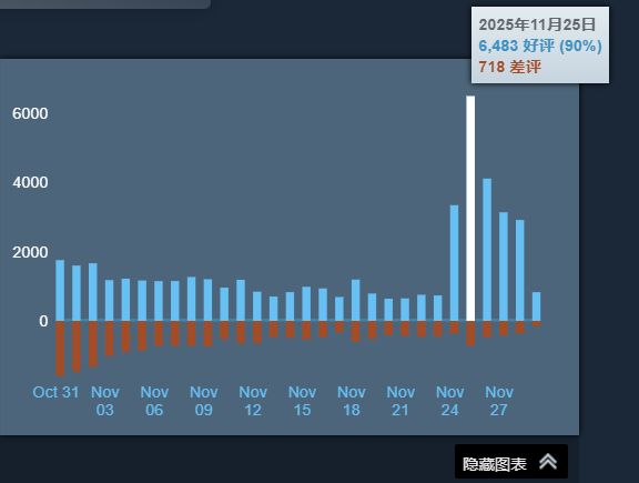 但在那之后,战地6却快速反应推出了多项有效举措。这些改动也得到了玩家的积极响应,在本周的24日、25日和26日三天均取得了全语言90%好评的成绩,截至今天的最近一周获得了88.5好评的成绩。说一句著名的“蒸蒸日上”也不为过。