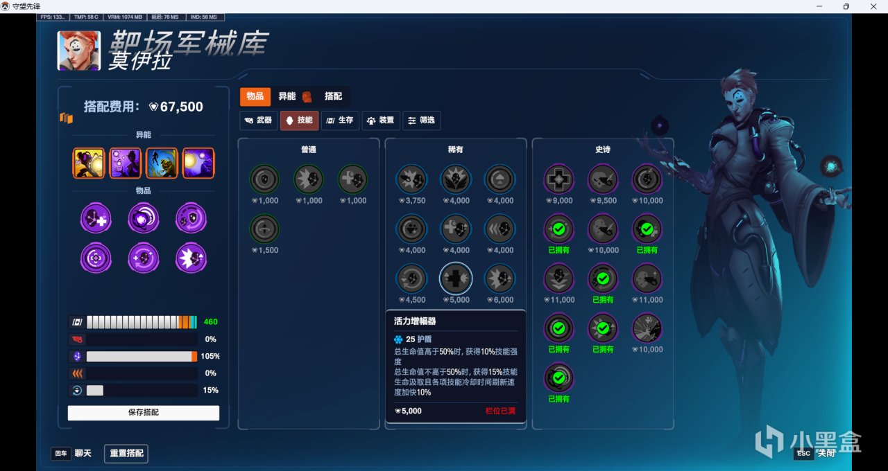 可依據習慣換其它異能,如消耗50能量傷害提升20%等