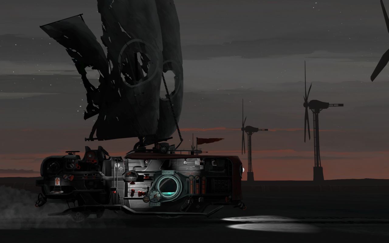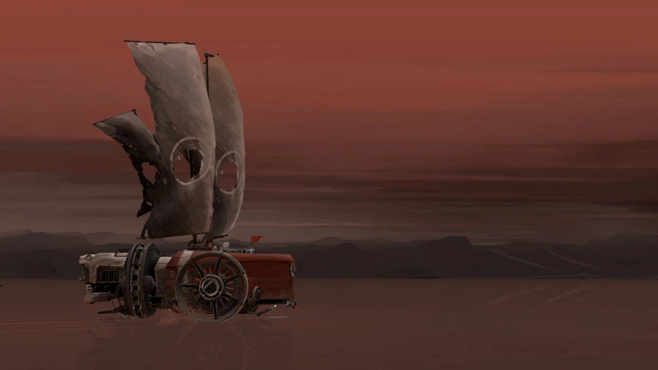 当我驾驶着那艘庞大而残破的蒸汽陆行船,缓缓驶过那片干涸的海洋时