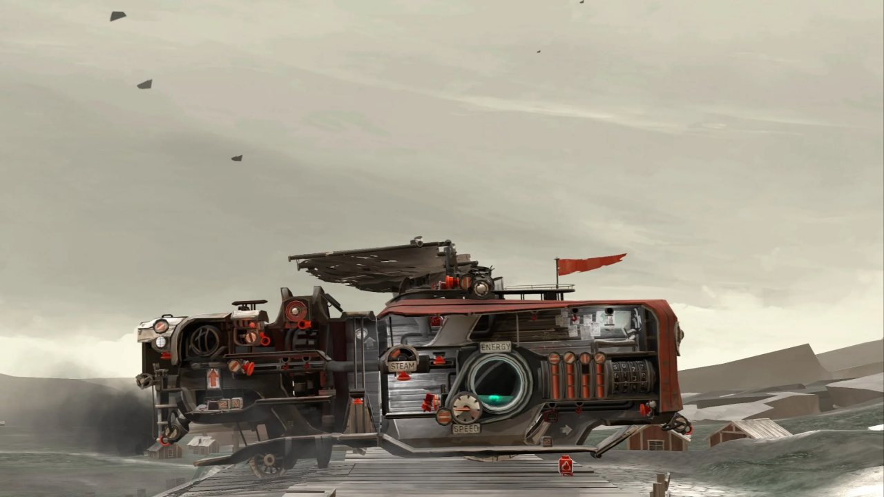 将捡来的废料投入燃烧室,拉动蒸汽阀门,等待压力上升,然后收起帆布,打开推进器