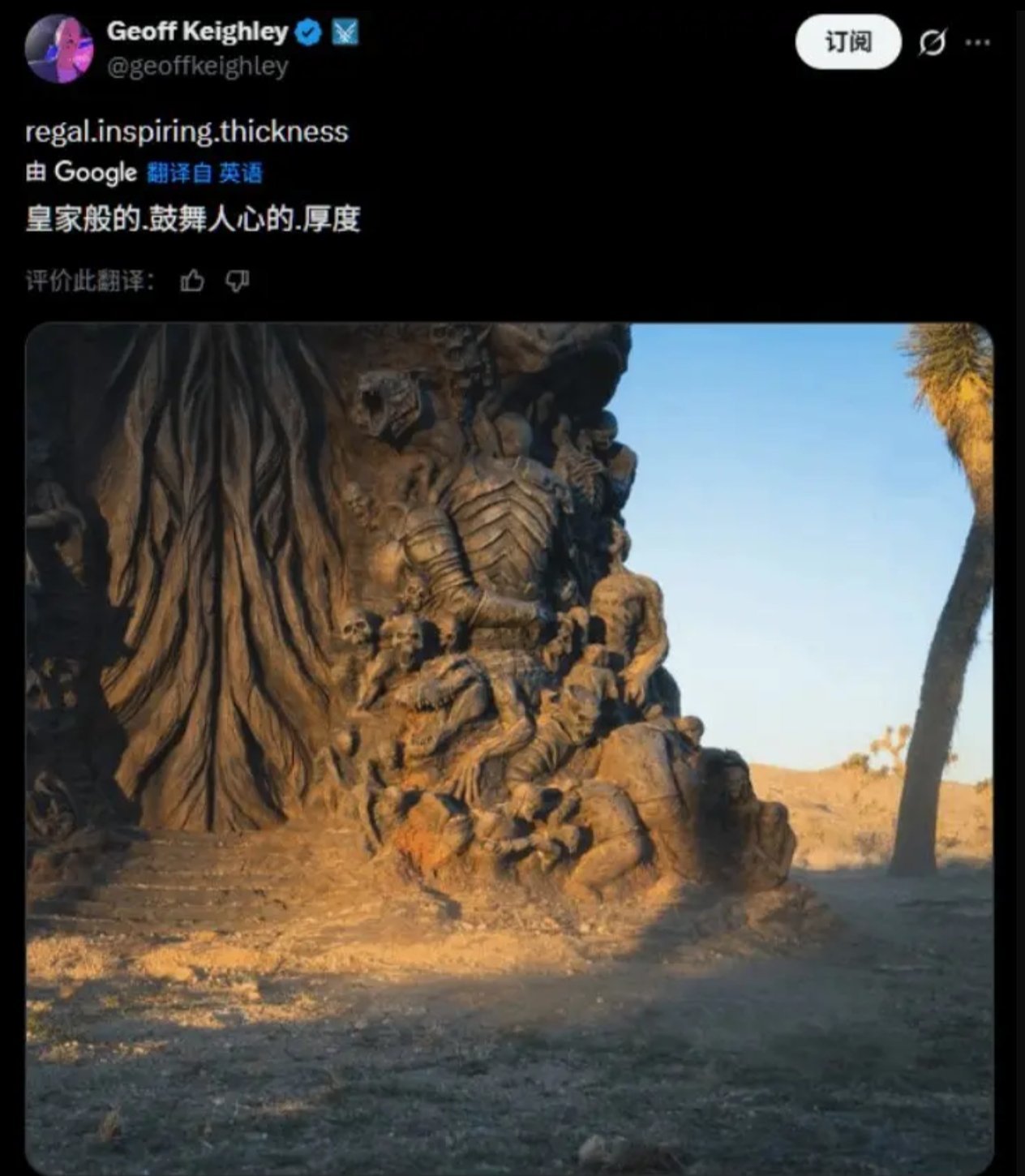 TGA主持人Geoff Keighley近日在推特发布了一张神秘图片,最初被玩家误认为是游戏截图。随后TGA官方账号转发了这条推文并附带地理坐标,粉丝们才发现这竟是一座现实存在的大型雕塑。