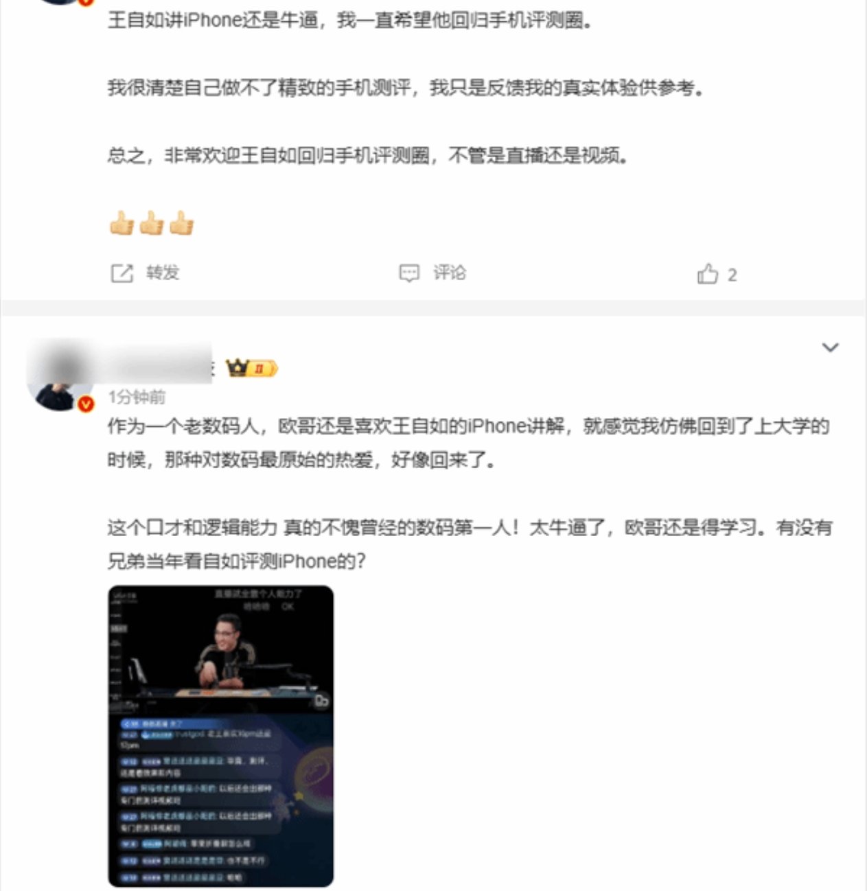 直播中,王自如凭借扎实的专业知识,对iPhone 17的影像系统、处理器性能等核心功能进行了深入浅出的讲解,并能根据观众提问灵活调整内容重点。这种“双向交流”的测评方式显著提升了观看体验,让观众从被动的信息接收者转变为积极的参与者。数码圈对此评价积极,多位数码博主和资深用户称赞其表现为“行业天花板”、“断层式领先”。有观众感叹,王自如的讲解让他们重温了学生时代对数码产品最原始的热爱。