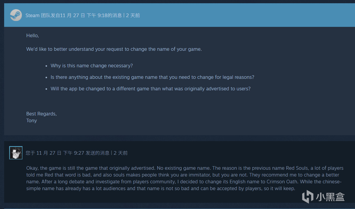 你別說Steam審覈人員還怪負責呢,還問了我一聲,爲啥要改名啊,老弟,你該不會來是換個名字搞詐騙吧?我趕緊給人解釋,遊戲沒變,這不玩家吐槽的多,就想換名字嘛。