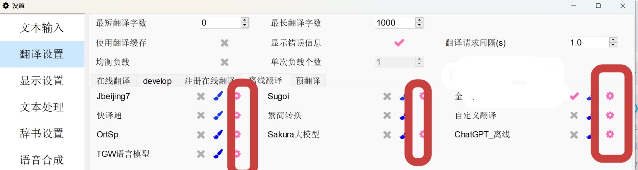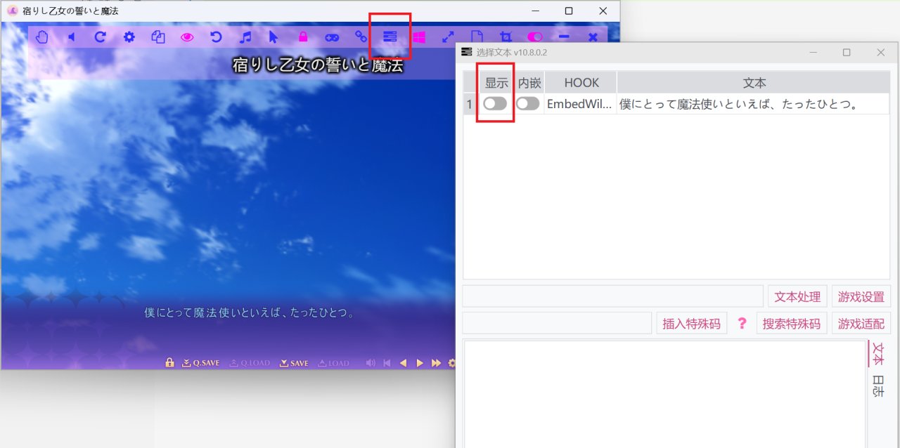 如果游戏支持内嵌翻译,那么会有“内嵌”这一列按钮,否则只会有“显示”这一列按钮。