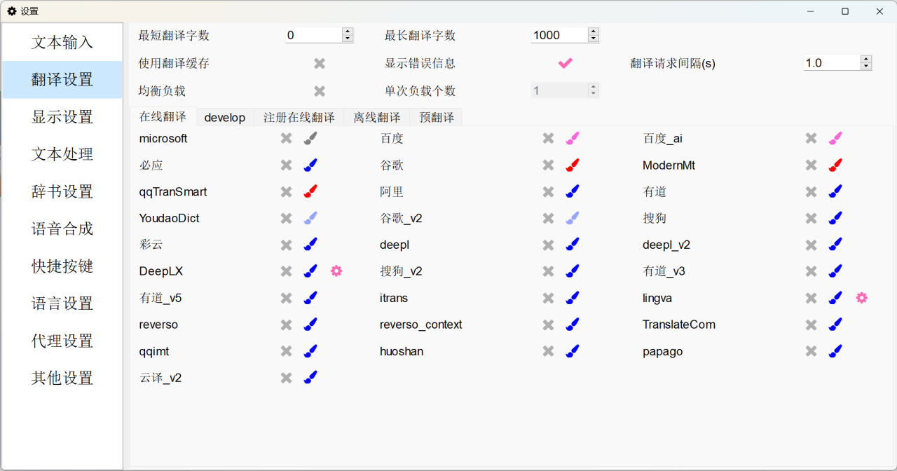 离线翻译和在线翻译对比,如果需要离线翻译(软件默认是不带这些离线引擎的)
